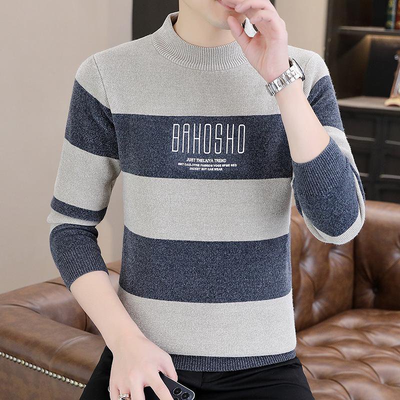 남성 반폴라 풀오버 스트라이프 니트