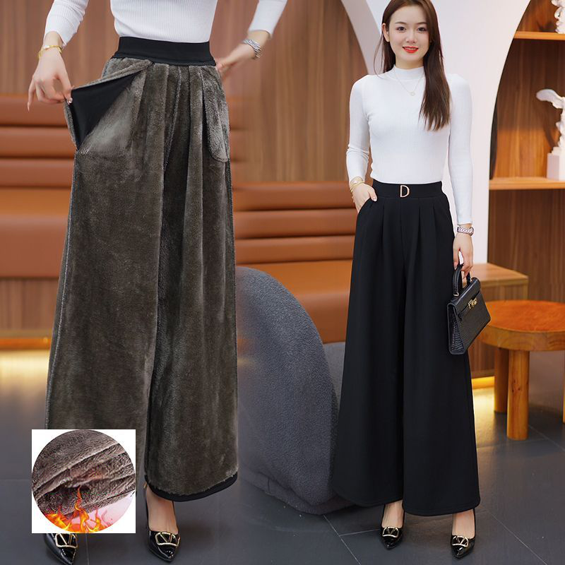 JL-여성 기모 하이웨스트 드롭 와이드 팬츠